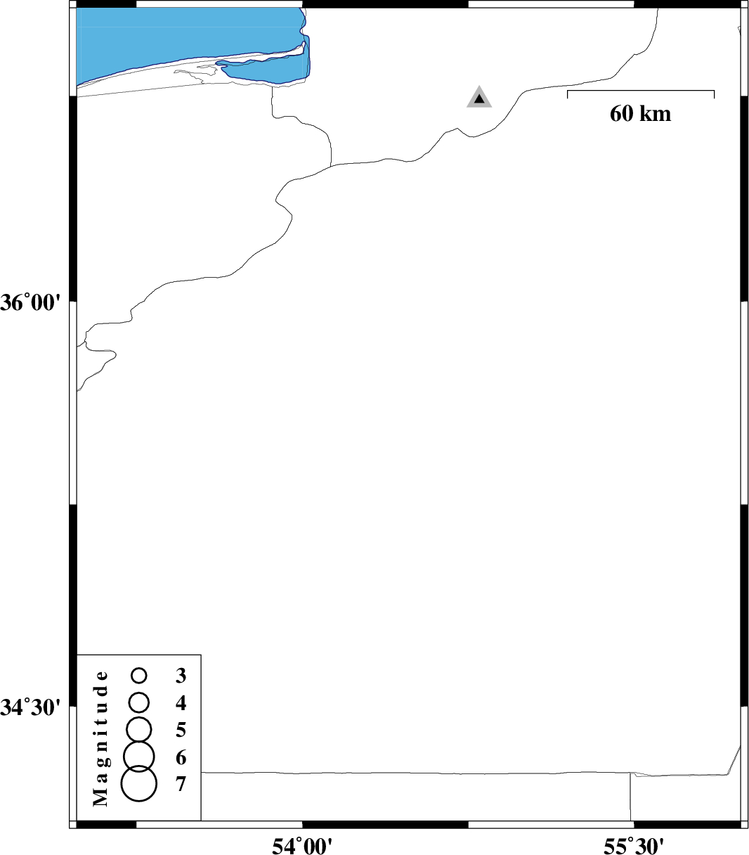 | 2010/11/24 | 13:03:29.2 | 16:33:29.2 | 35.57 | 54.48 | 14 | ML:3.2 | Semnan Province, 67 km South-East of Damghan |