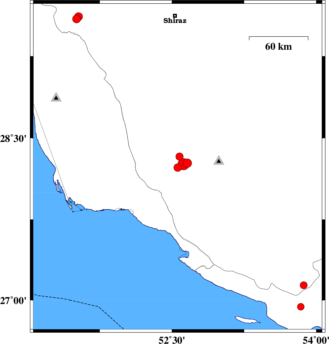 2010/11/26 13:27:42.6 16:57:42.6 28.2752.668 ML:4.1 Fars Province, 42 km South-West of Qir va Karzin
