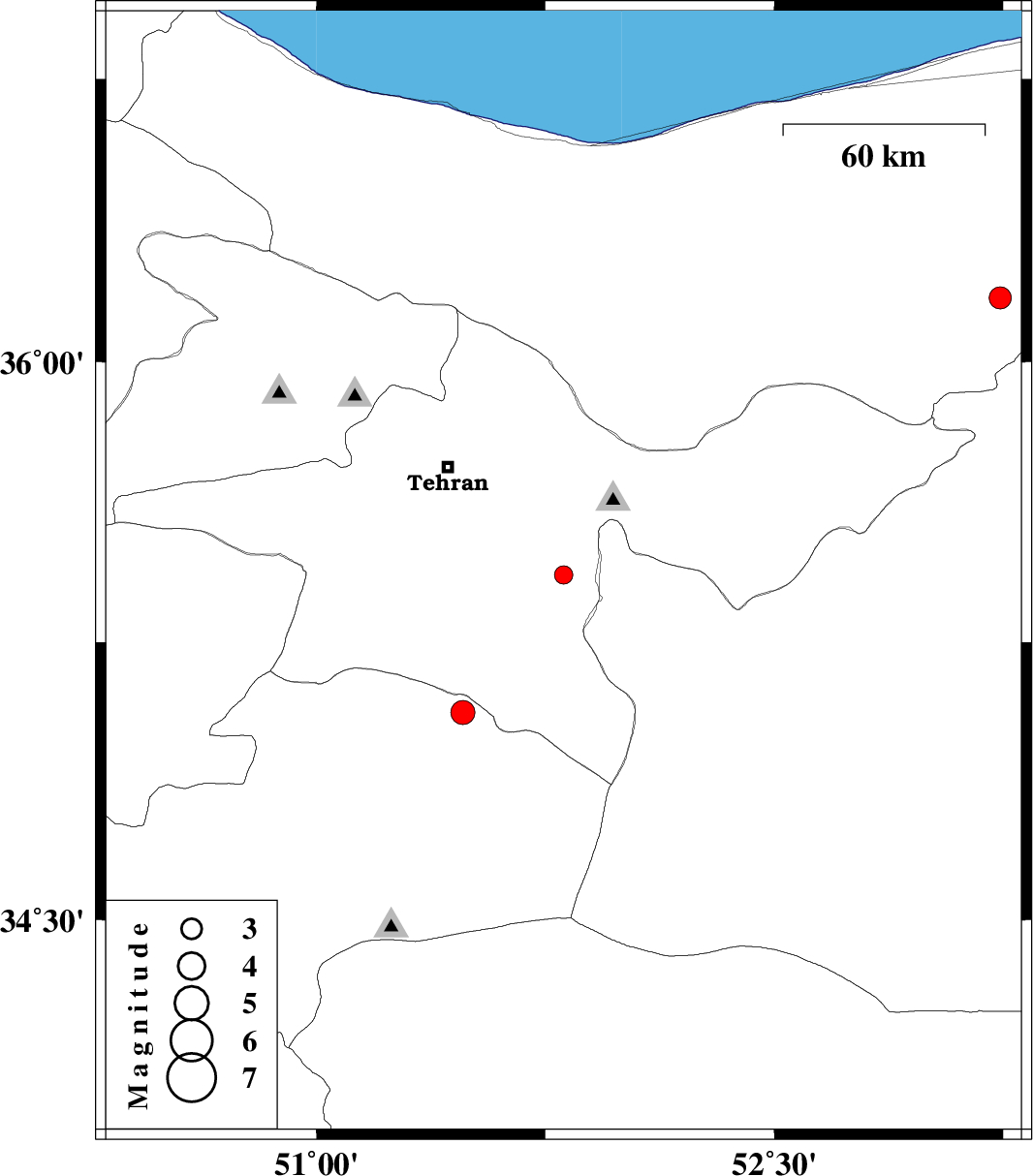 | 2010/11/30 | 04:07:02.8 | 07:37:02.8 | 35.43 | 51.81 | 14 | ML:2.7 | Tehran Province, 13 km East of Pakdasht | ||