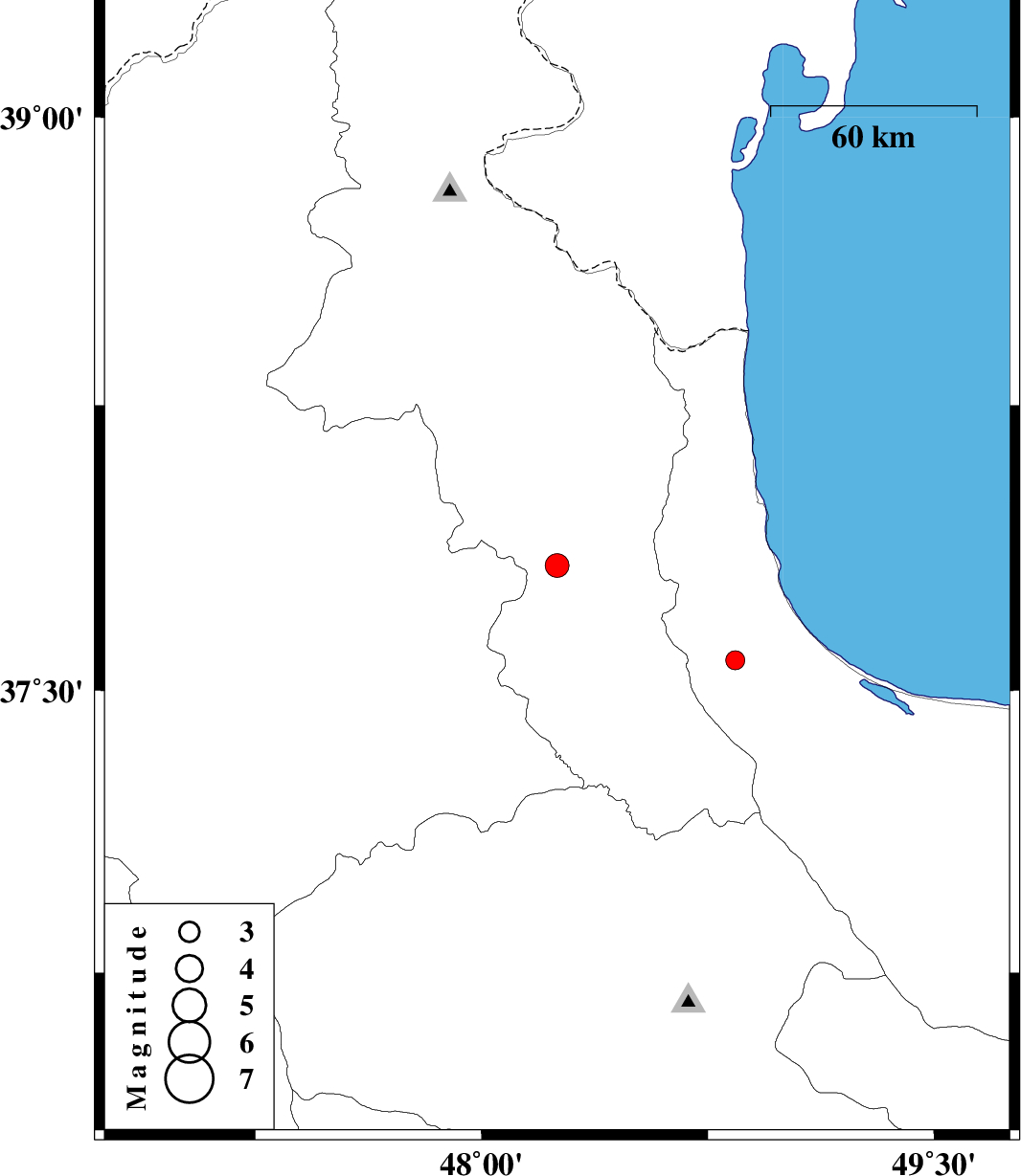 | 2010/12/06 | 21:18:26.9 | 00:48:26.9 | 37.58 | 48.84 | 14 | ML:2.8 | Gilan Province, 26 km South of Hashtpar |