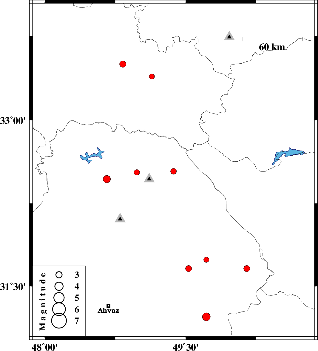 2010/11/12 | 18:32:07.4 | 22:02:07.4 | 32.53 | 48.98 | 34 | ML:2.7 | Khoozestan Province, 20 km North-West of Lali | ||