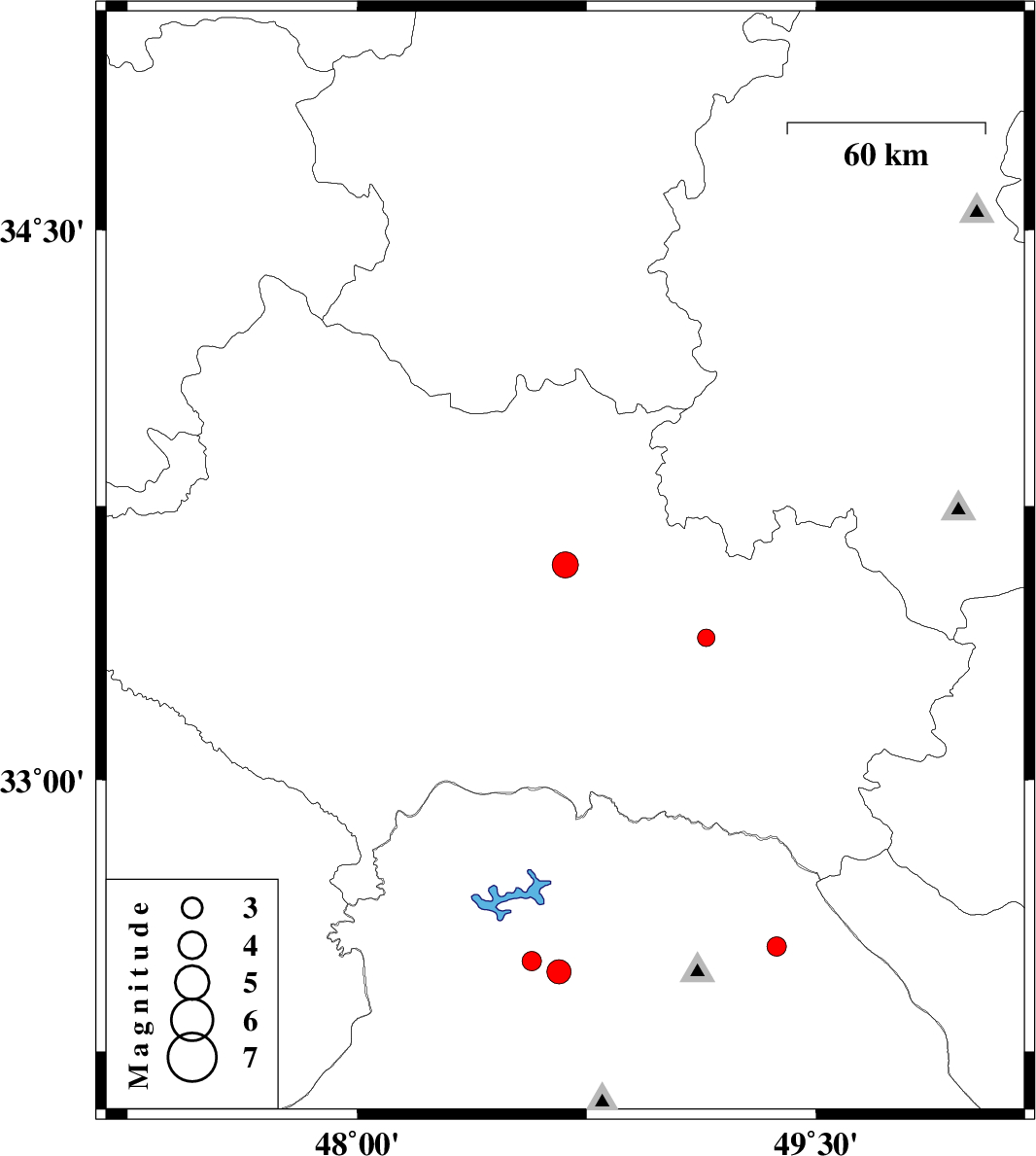 | 2010/12/13 | 15:00:27.5 | 18:30:27.5 | 33.59 | 48.68 | 14 | ML:3.8 | Lorestan Province, 35 km South of Borujerd | ||