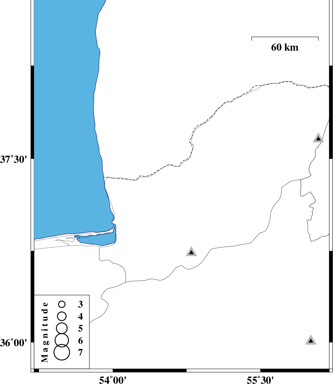 | 2010/12/15 | 22:02:33.9 | 01:32:33.9 | 37.28 | 54.7 | 18 | ML:3.6 | Golestan Province, 40 km West of Gonbad-e kavus |