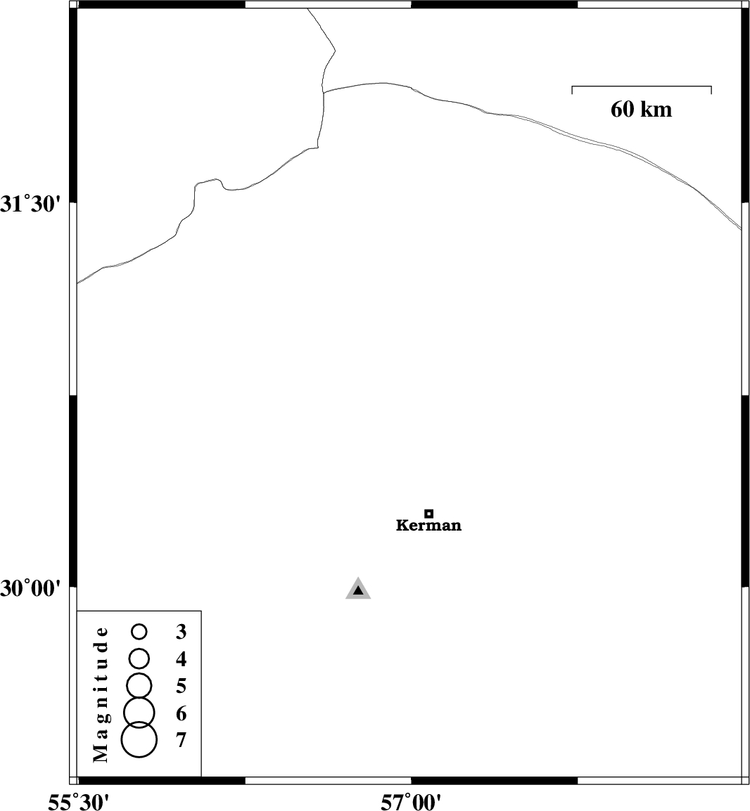 | 2010/12/19 | 11:32:40.7 | 15:02:40.7 | 30.75 | 56.99 | 18 | ML:3 | Kerman Province, 41 km East of Zarand |