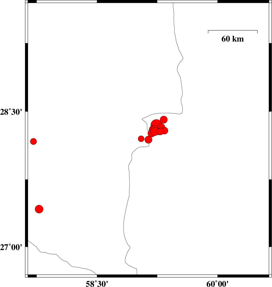 2010/12/20 22:12:58.8 01:42:58.8 28.2859.2215 ML:4.6 Sistan va Baloochestan Province, 125 km South-East of Bam