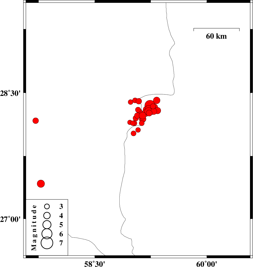 2010/12/21 12:45:52.5 16:15:52.5 28.1558.9740 ML:2.8 Kerman Province, 127 km North-East of Kahnuj