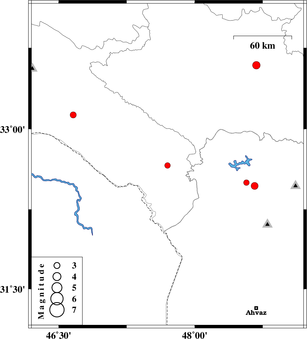 | 2010/12/21 | 16:43:15.0 | 20:13:15.0 | 32.66 | 47.7 | 14 | ML:2.8 | Ilam Province, 41 km East of Dehloran | ||