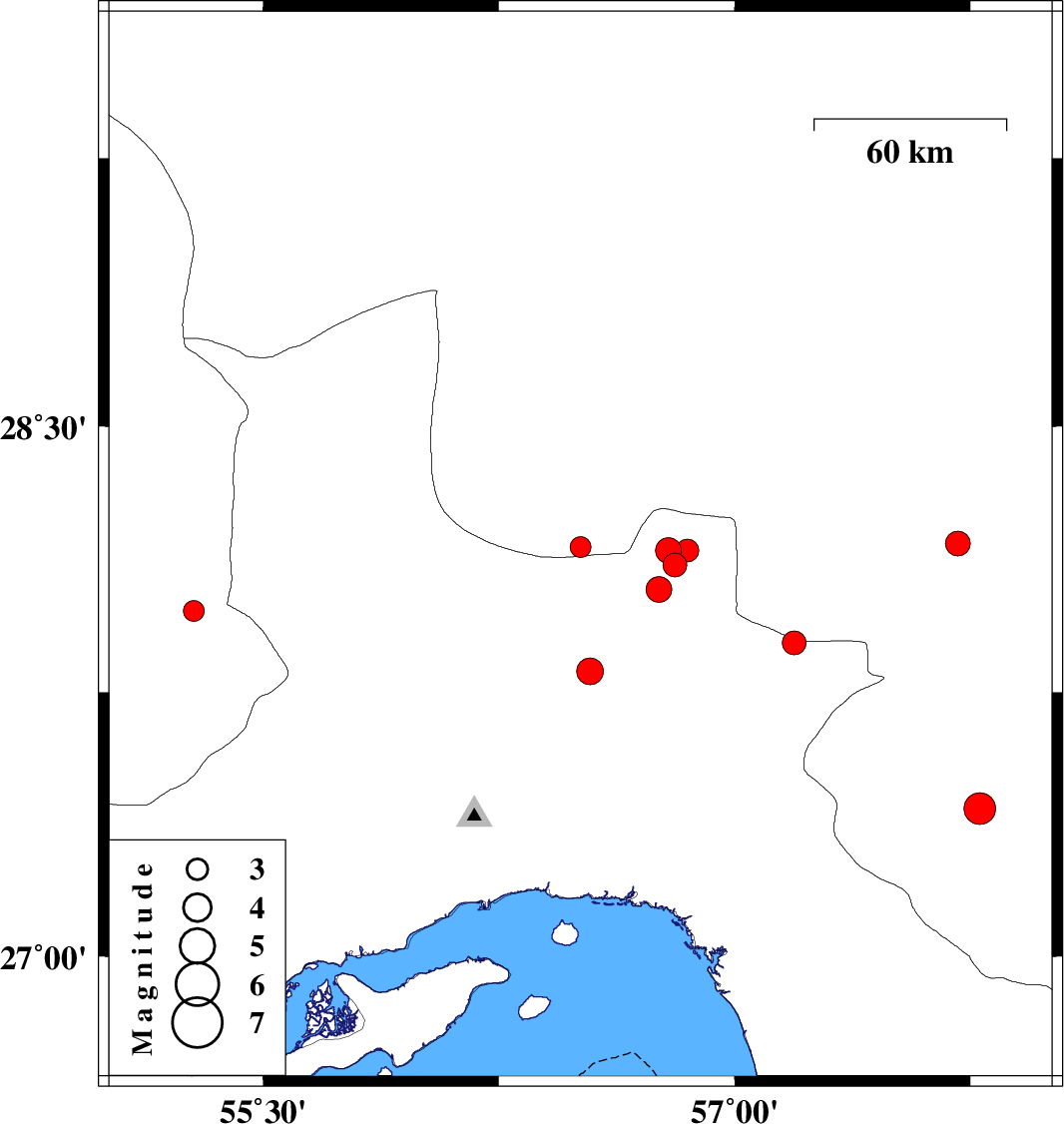 2010/12/16 | 02:08:03.6 | 05:38:03.6 | 27.81 | 56.54 | 14 | ML:3.8 | Hormozgan Province, 75 km North-East of Bandar-e abbas | ||