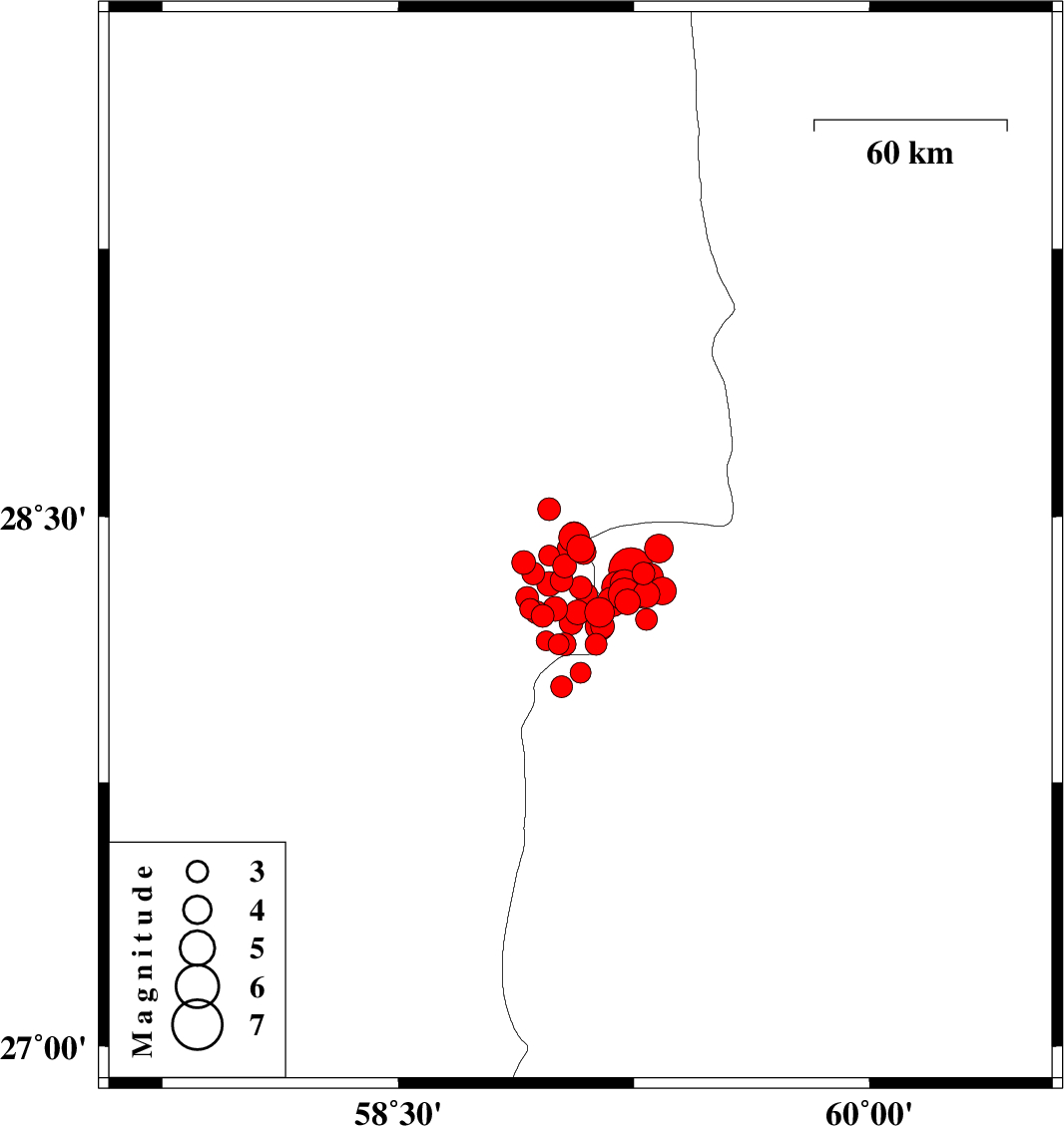 2010/12/22 07:58:26.5 11:28:26.5 28.245916 ML:3.5 Kerman Province, 115 km South-East of Bam