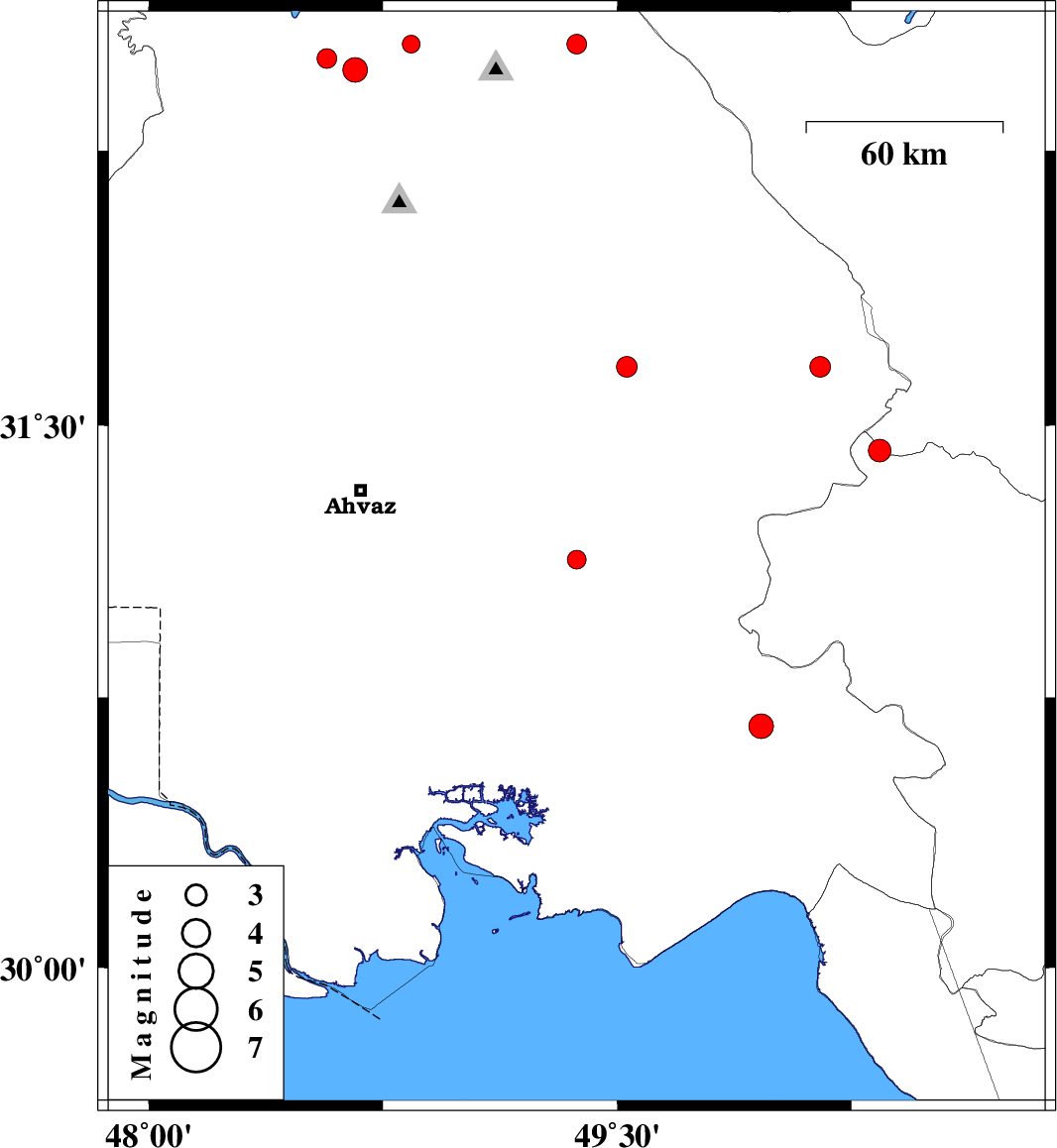 | 2010/12/15 | 09:15:09.9 | 12:45:09.9 | 30.67 | 49.96 | 18 | ML:3.5 | Khoozestan Province, 26 km East of Omidiyeh | ||