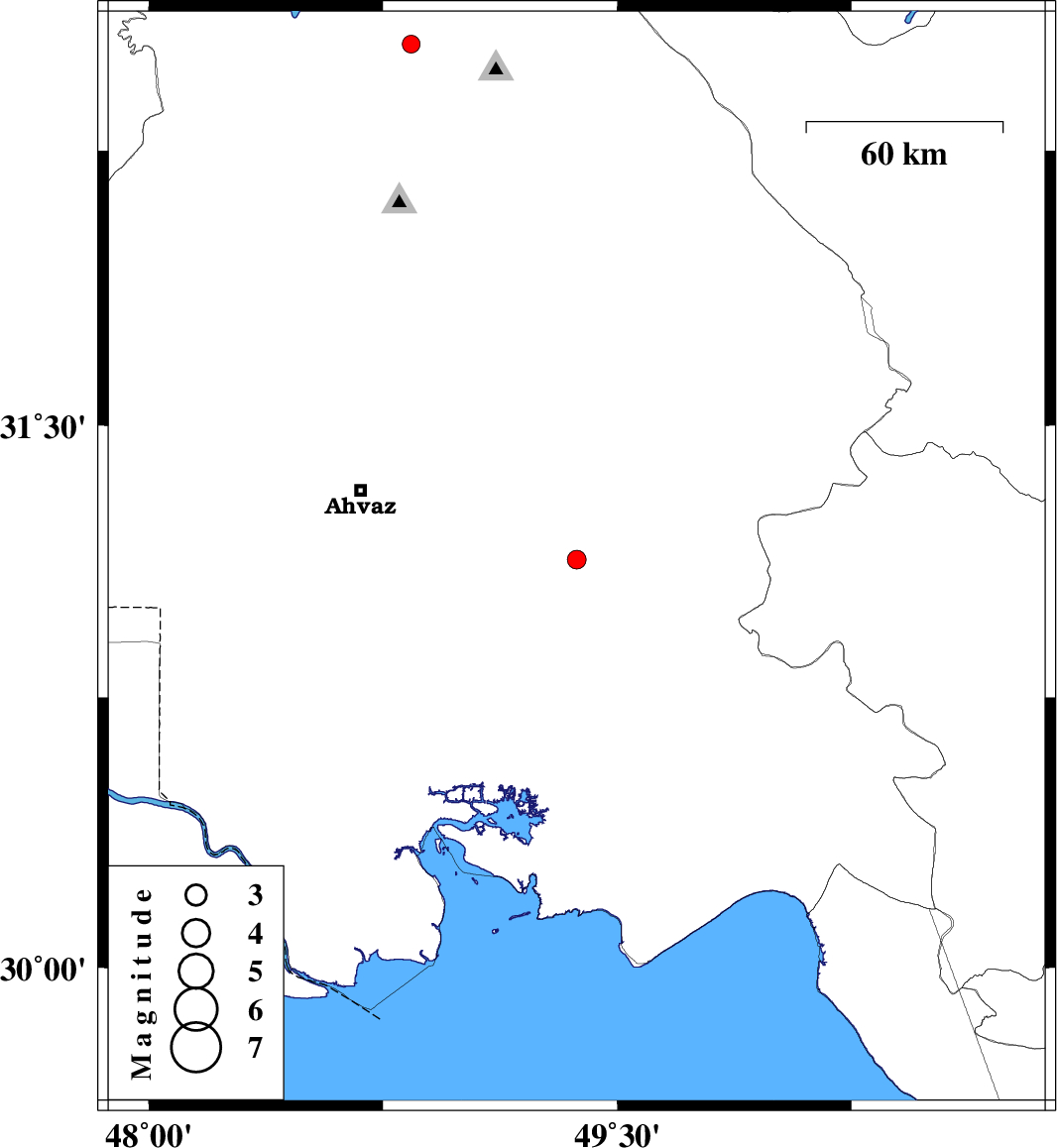 | 2010/12/29 | 03:43:33.6 | 07:13:33.6 | 31.13 | 49.37 | 25 | ML:2.7 | Khoozestan Province, 28 km South-West of Ramhormoz | ||