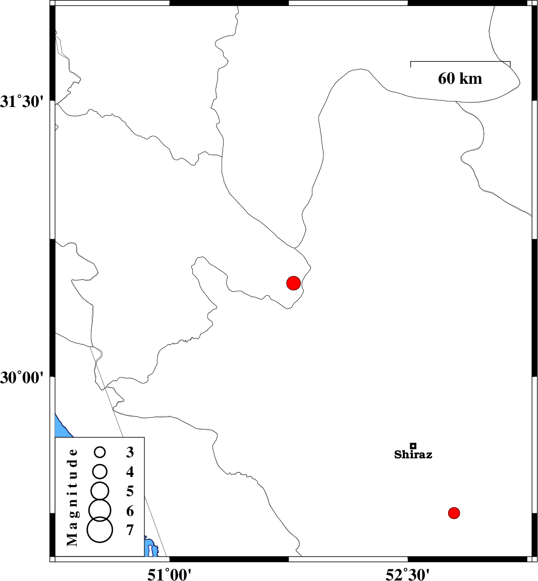 | 2011/01/02 | 07:46:05.1 | 11:16:05.1 | 30.51 | 51.78 | 33 | ML:4 | Kohkiluieh va boyerahmad Province, 27 km South-East of Yasuj | ||