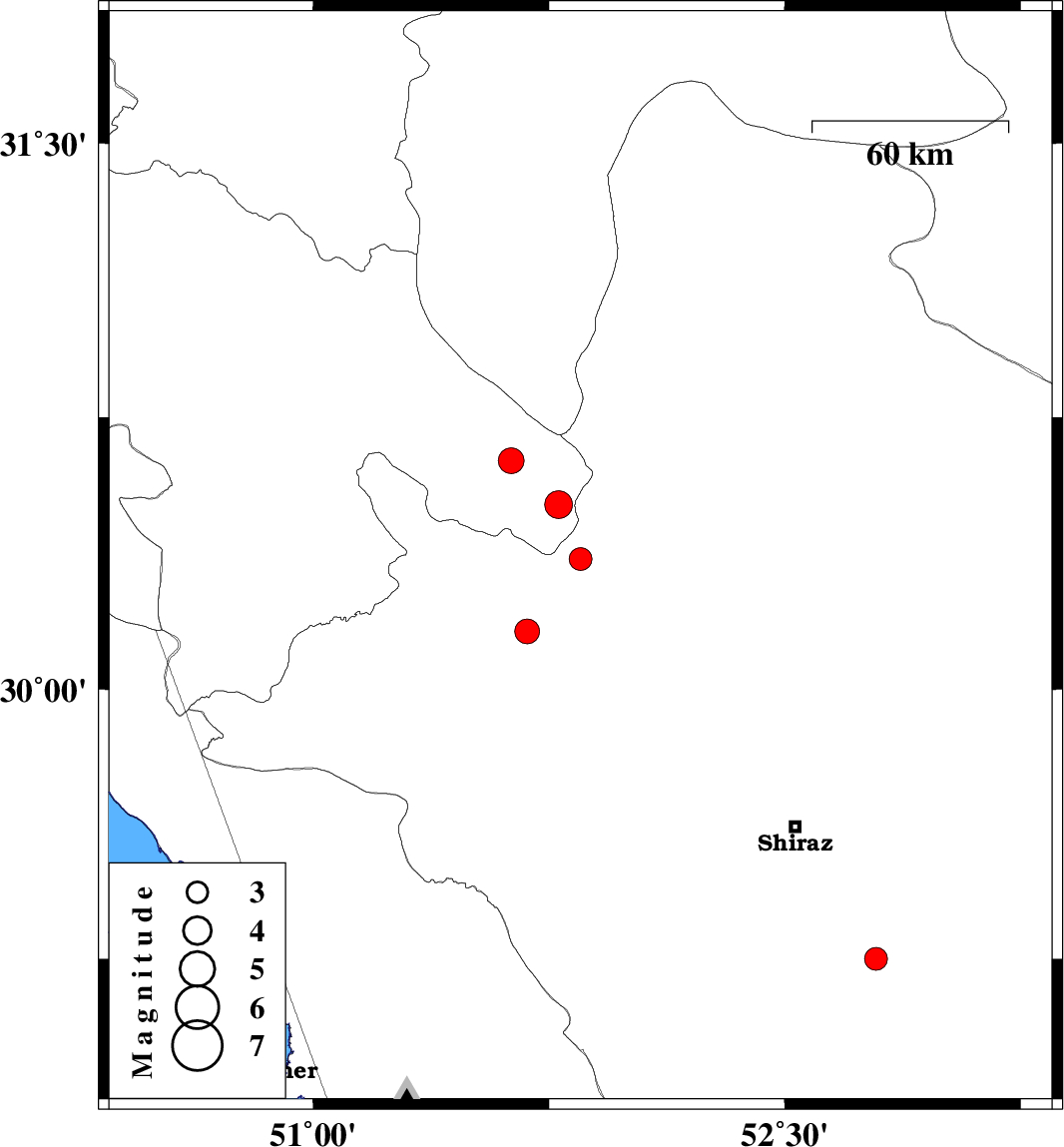 | 2010/12/07 | 11:51:58.6 | 15:21:58.6 | 30.16 | 51.68 | 43 | ML:3.5 | Fars Province, 16 km East of Nurabad |