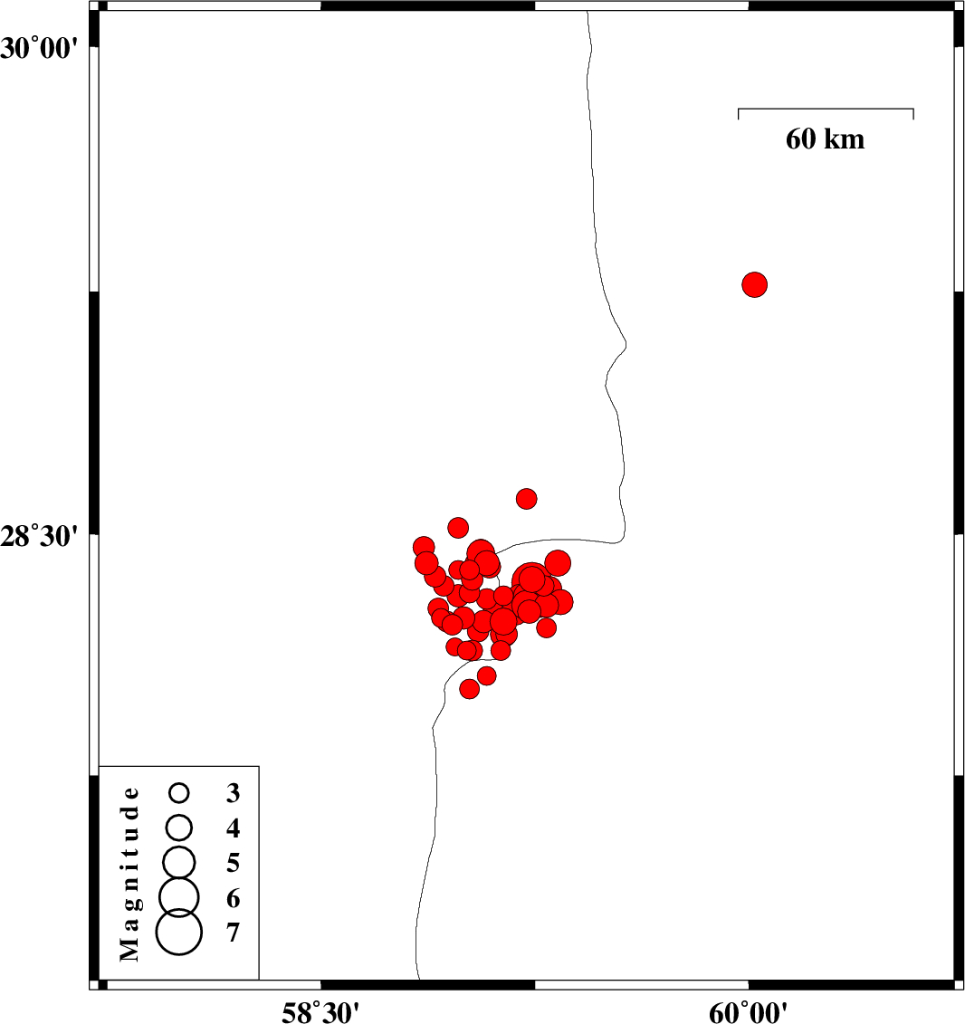 2010/12/22 07:58:26.5 11:28:26.5 28.245916 ML:3.5 Kerman Province, 115 km South-East of Bam