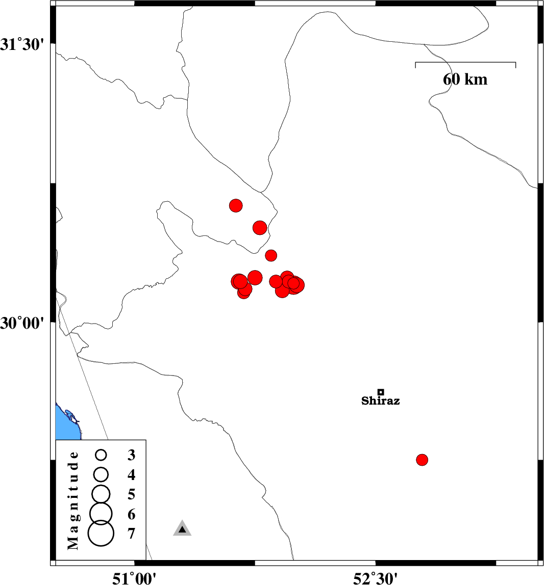 2011/01/05 05:55:48.6 09:25:48.6 30.251.9914 ML:5.2 Fars Province, 7 km Ardakan