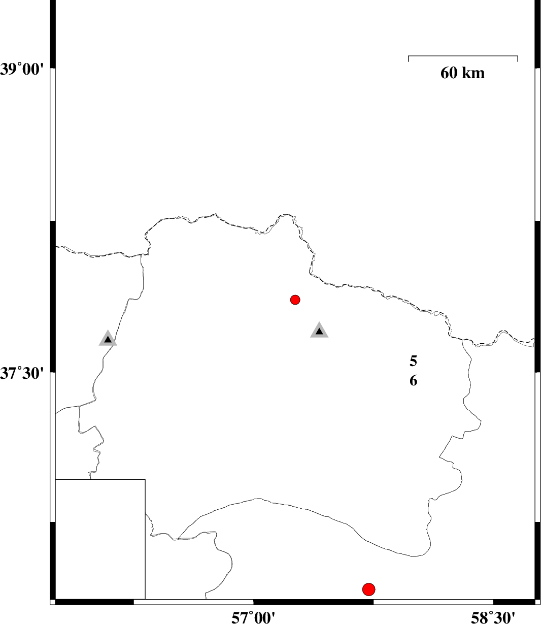 | 2011/01/05 | 16:32:41.2 | 20:02:41.2 | 37.86 | 57.26 | 7 | ML:2.7 | Khorasan(north) Province, 44 km North of Bojnurd | ||