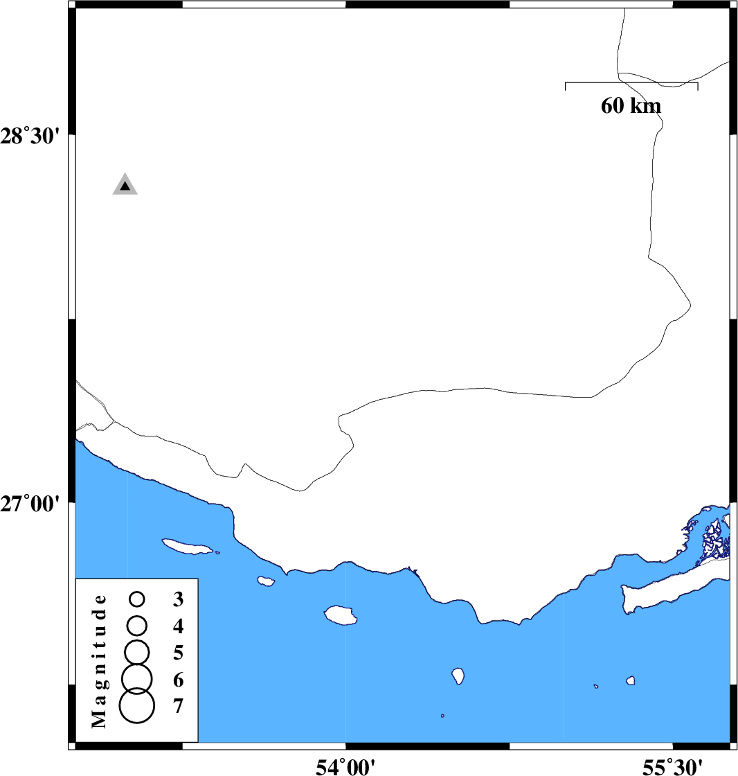 | 2011/01/09 | 13:13:06.7 | 16:43:06.7 | 27.51 | 54.26 | 17 | ML:4.2 | Fars Province, 21 km South of Lar |