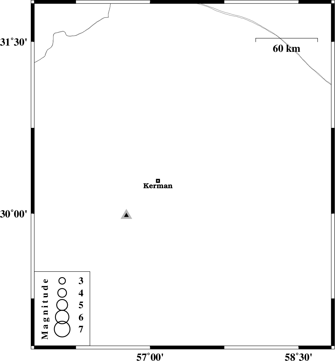 | 2011/01/09 | 18:11:04.4 | 21:41:04.4 | 30.33 | 57.33 | 14 | ML:4.5 | Kerman Province, 25 km East of Kerman |