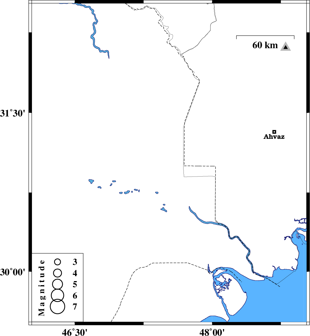 | 2011/01/12 | 20:21:55.8 | 23:51:55.8 | 31.02 | 47.53 | 23 | ML:3.5 | Iraq, 61 km North-West of Al Basrah |