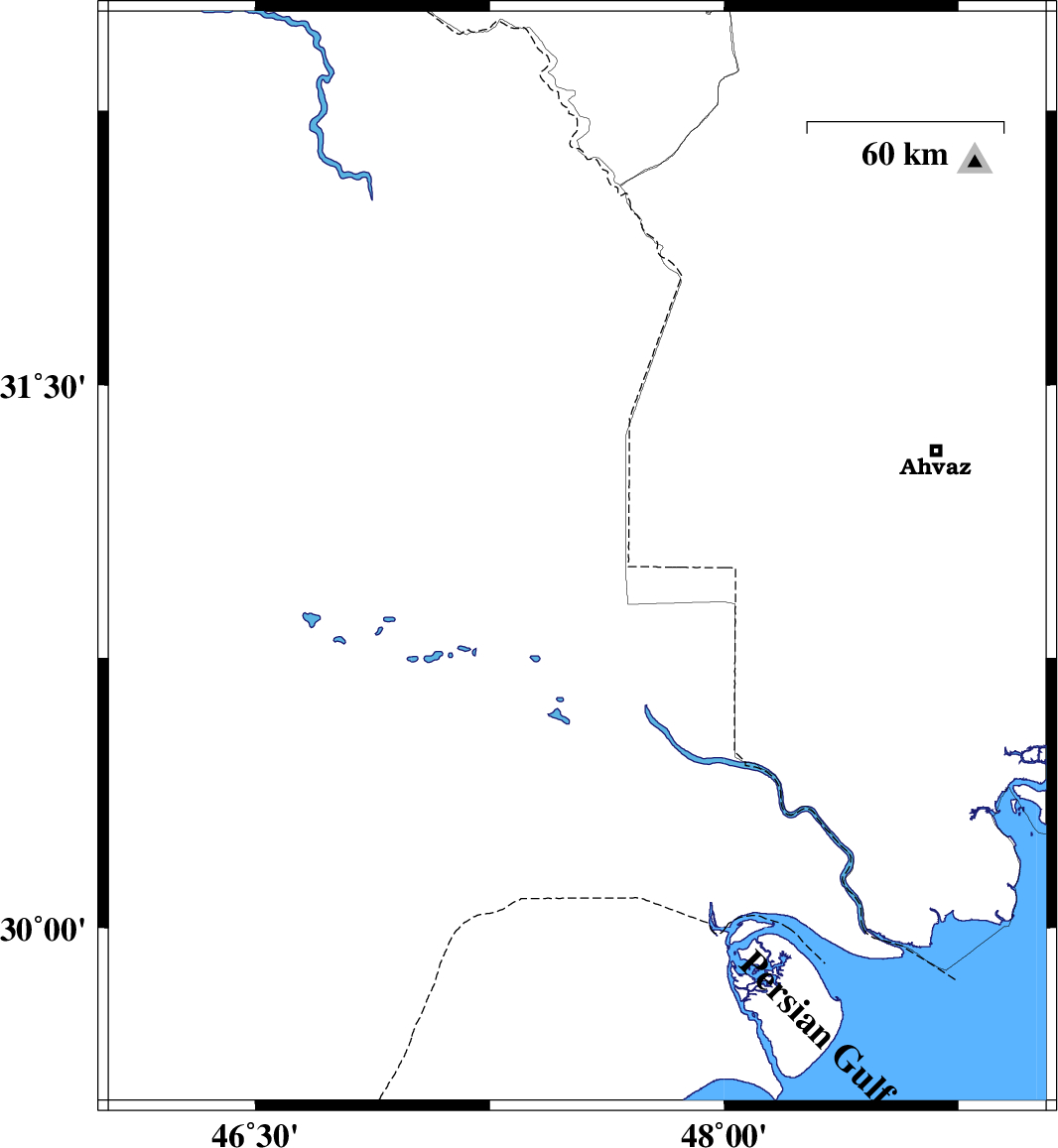 Map Region : lat:29.52-32.52  lon:46.03-49.03