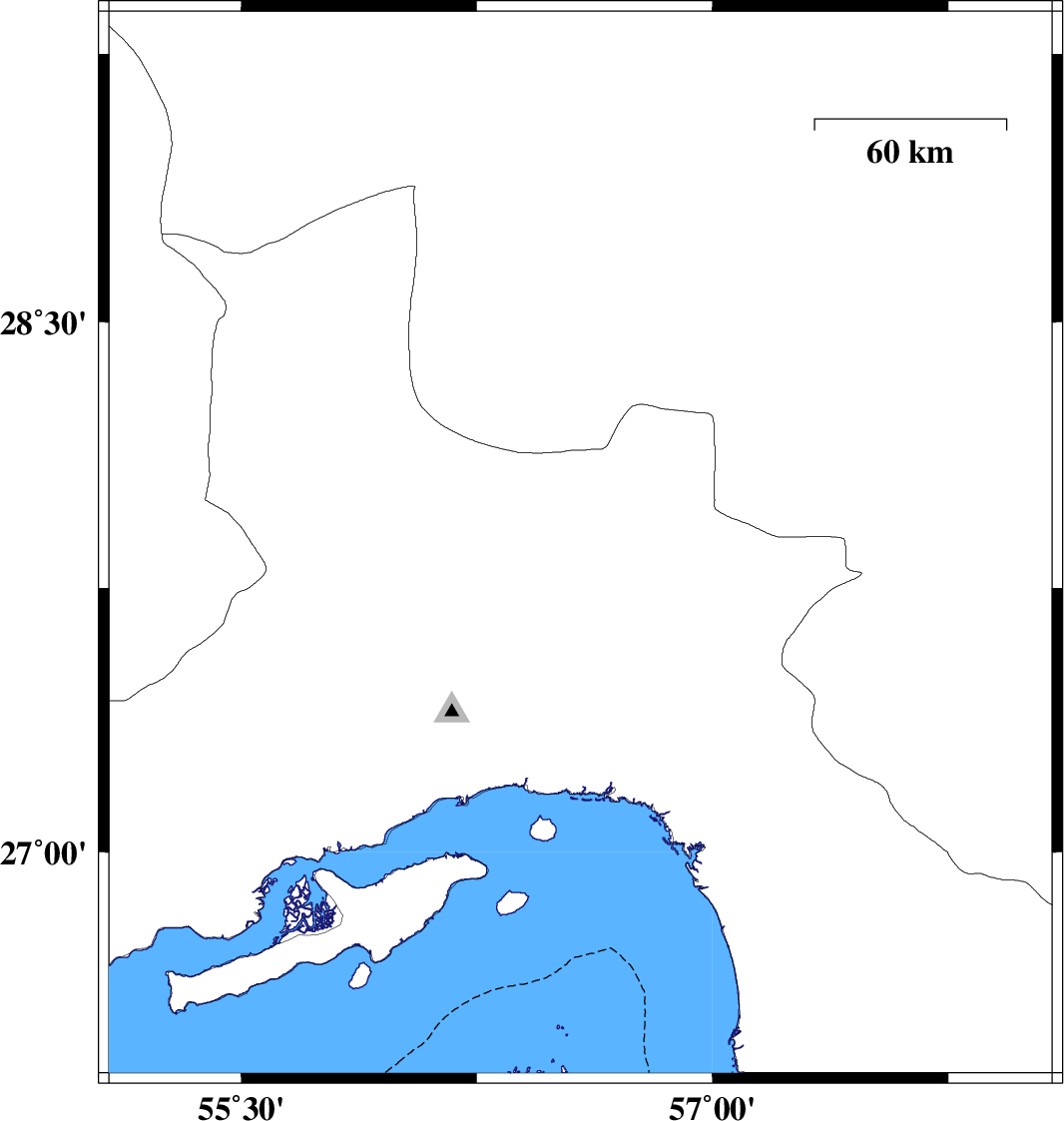 2011/01/06 00:45:08.2 04:15:08.2 27.5956.8930 ML:3.1 Hormozgan Province, 39 km North-West of Dehbarez