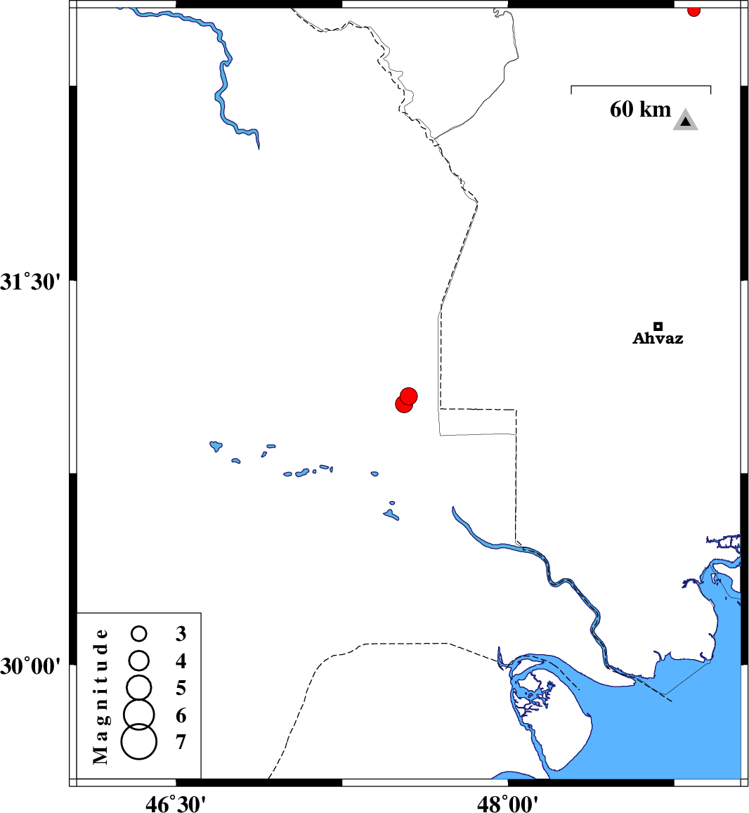 | 2011/01/12 | 20:21:55.8 | 23:51:55.8 | 31.02 | 47.53 | 23 | ML:3.5 | Iraq, 61 km North-West of Al Basrah | ||