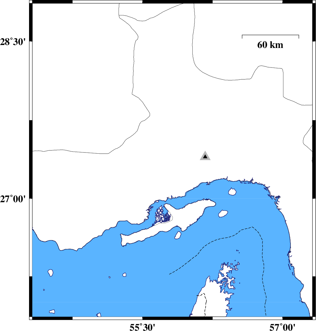 | 2011/01/25 | 13:59:28.9 | 17:29:28.9 | 27.36 | 55.82 | 14 | ML:3.6 | Hormozgan Province, 50 km North-West of Bandar-e abbas | ||