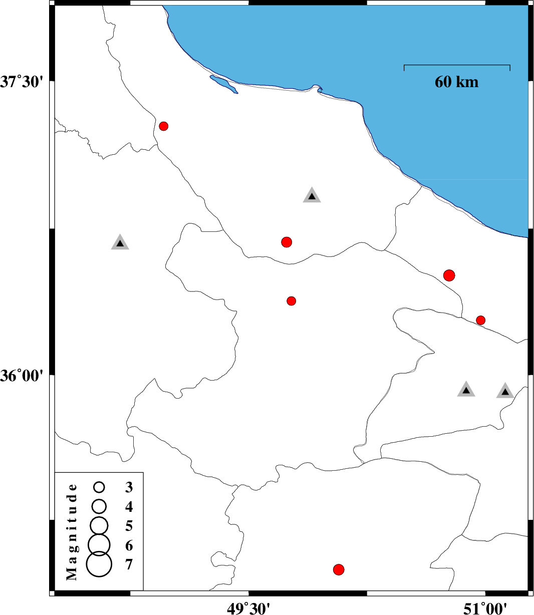 | 2011/01/05 | 04:03:44.6 | 07:33:44.6 | 37.27 | 48.96 | 14 | ML:2.5 | Gilan Province, 38 km North of Abbar | ||