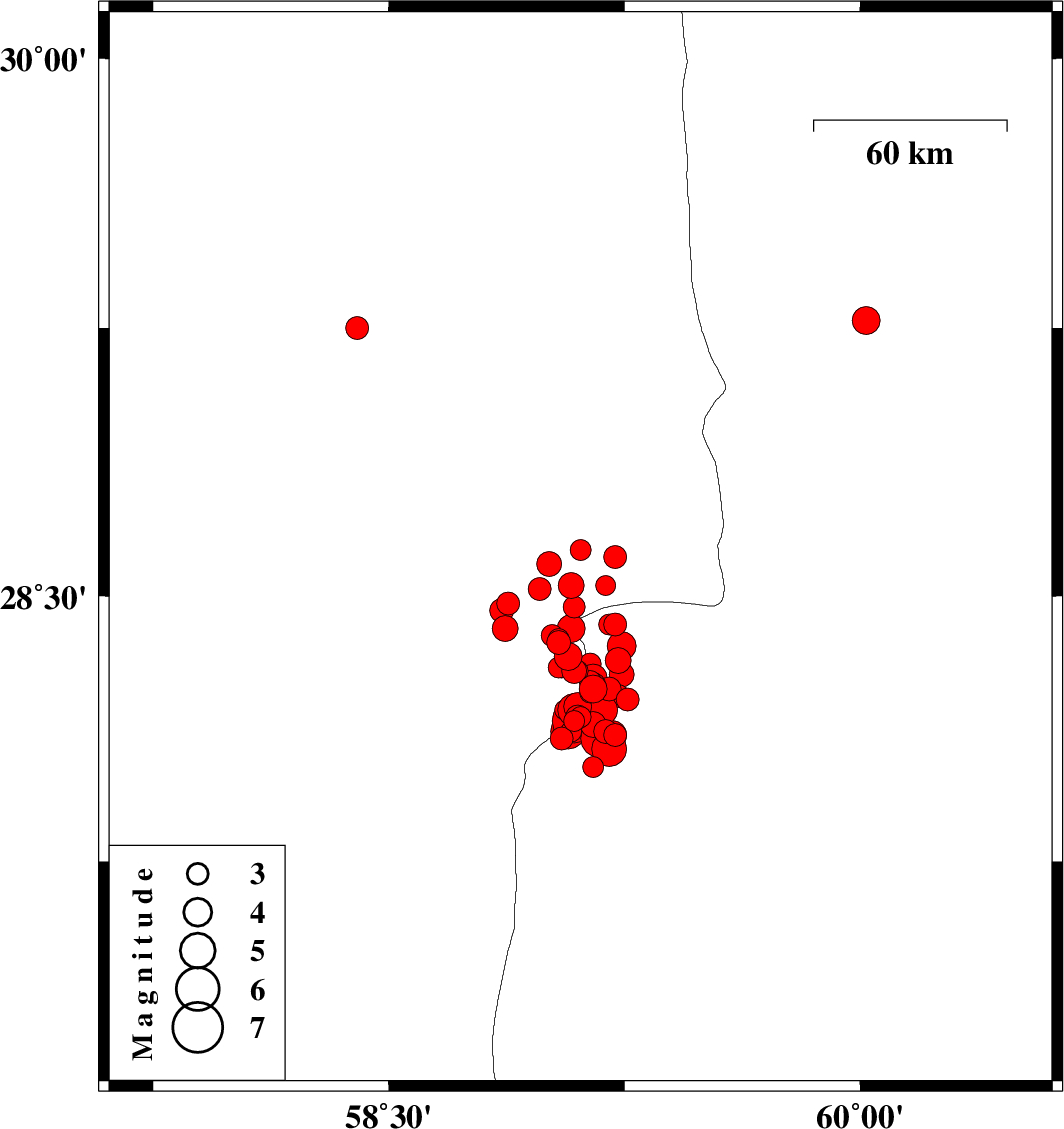 2011/01/27 19:32:54.5 23:02:54.5 28.1659.1114 ML:2.9 Kerman Province, 140 km North-East of Kahnuj