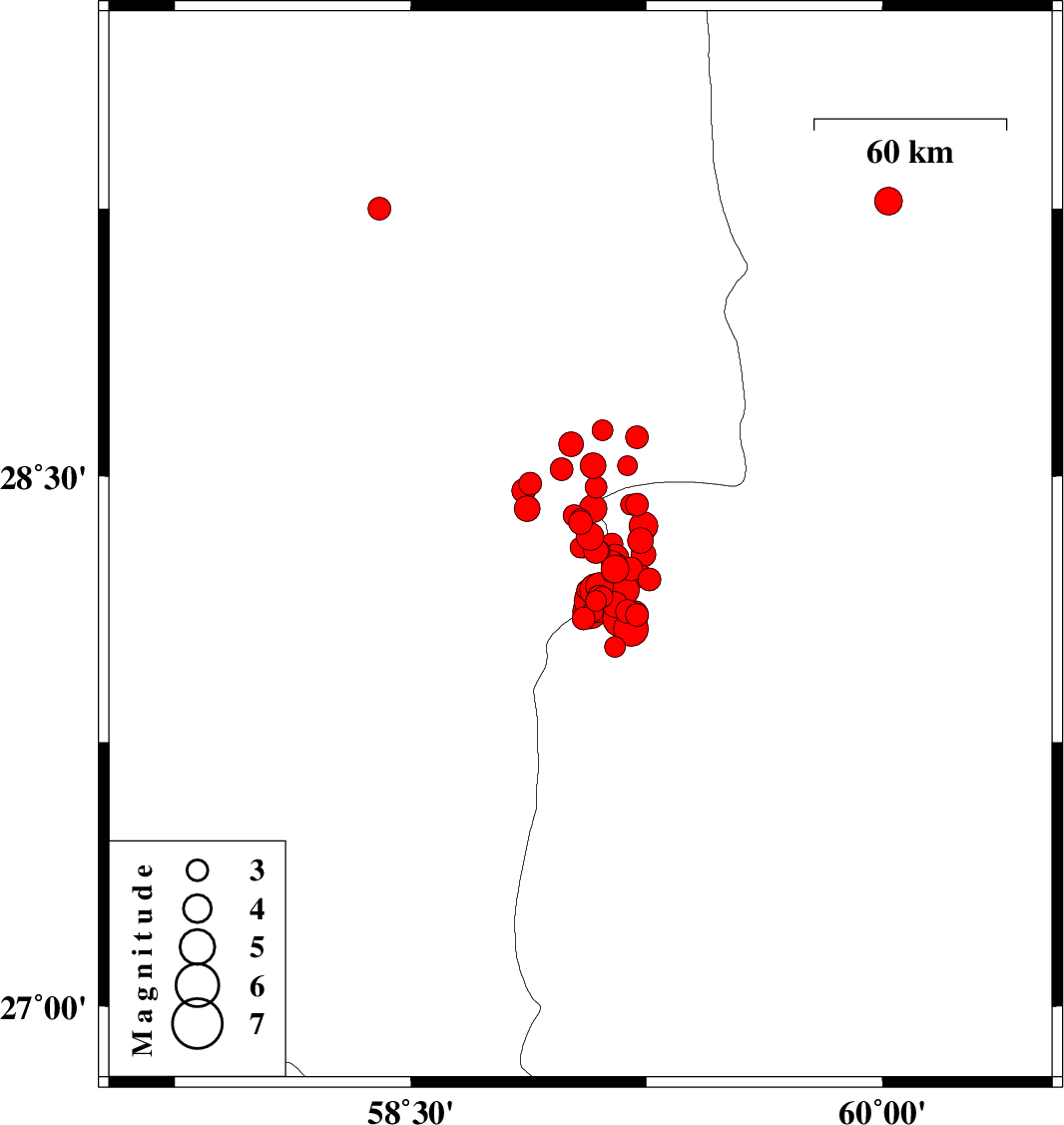 2011/01/27 19:32:54.5 23:02:54.5 28.1659.1114 ML:2.9 Kerman Province, 140 km North-East of Kahnuj