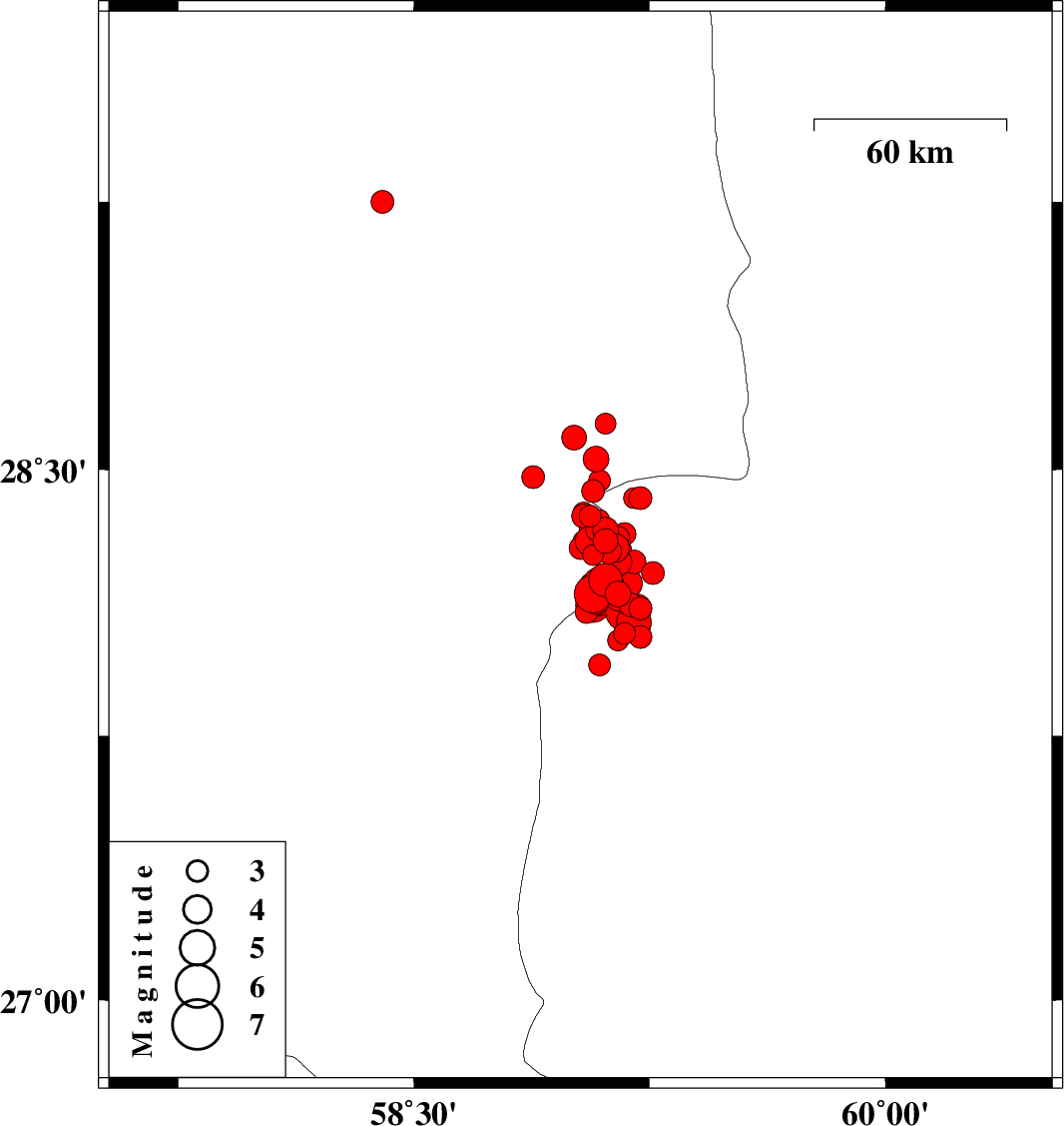 2011/01/28 04:20:36.3 07:50:36.3 28.1559.0715 ML:5.3 Kerman Province, 137 km North-East of Kahnuj