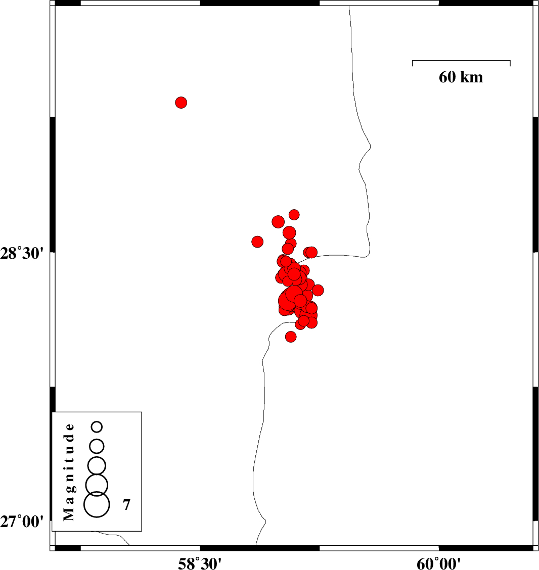 2011/01/27 16:58:55.7 20:28:55.7 28.359.0814 ML:3 Kerman Province, 114 km South-East of Bam