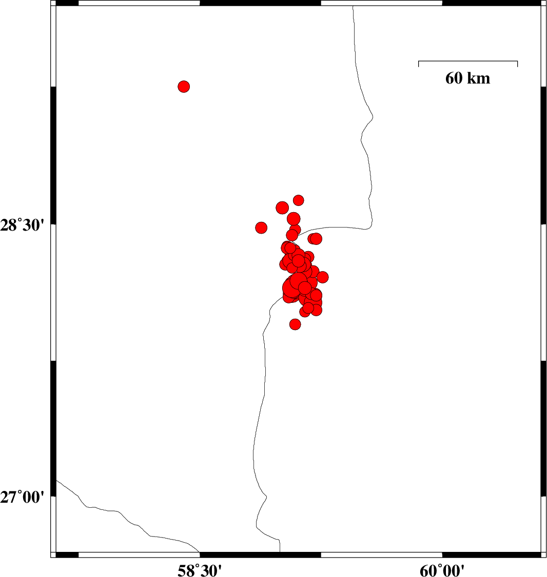 2011/01/28 08:37:25.5 12:07:25.5 28.3359.0814 ML:3 Kerman Province, 112 km South-East of Bam