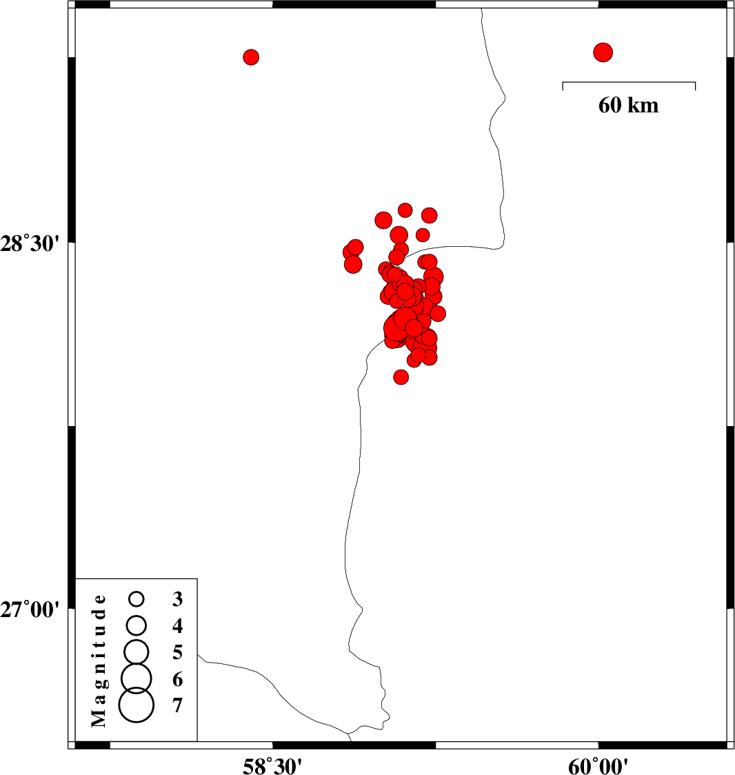 2011/01/28 08:37:25.5 12:07:25.5 28.3359.0814 ML:3 Kerman Province, 112 km South-East of Bam