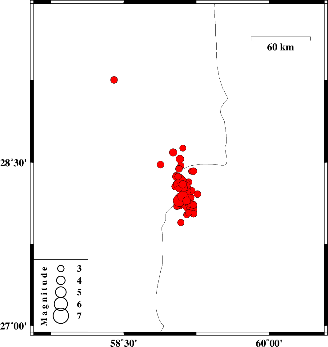 2011/01/28 08:37:25.5 12:07:25.5 28.3359.0814 ML:3 Kerman Province, 112 km South-East of Bam