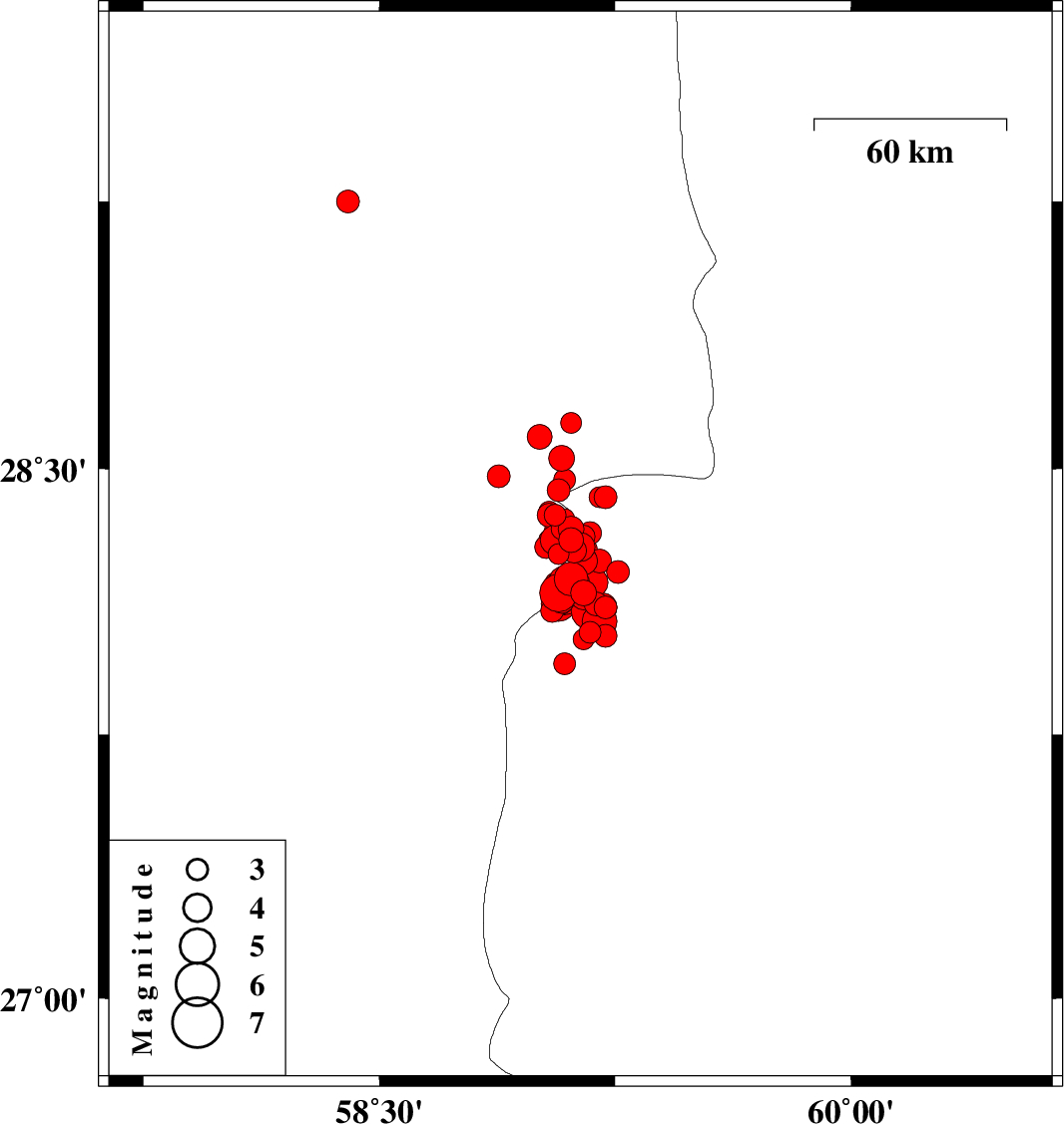 2011/01/28 01:31:43.5 05:01:43.5 28.1559.1114 ML:2.7 Kerman Province, 140 km North-East of Kahnuj