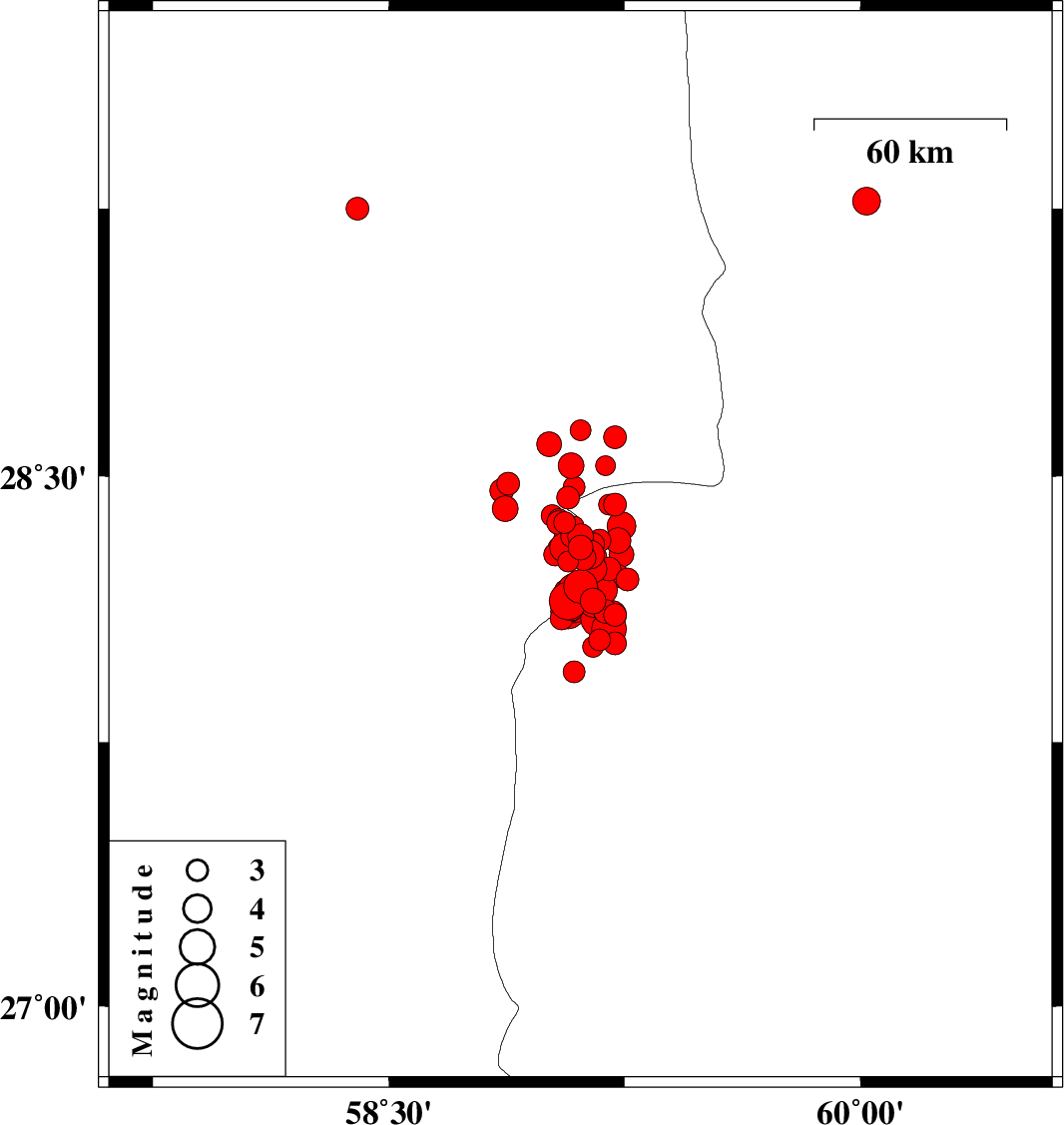 2011/01/28 08:37:25.5 12:07:25.5 28.3359.0814 ML:3 Kerman Province, 112 km South-East of Bam
