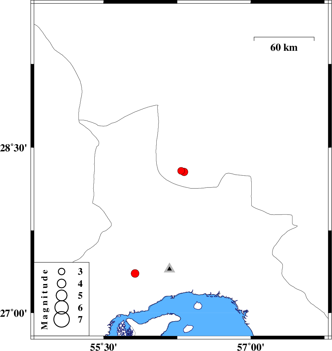 | 2011/01/25 | 13:59:28.9 | 17:29:28.9 | 27.36 | 55.82 | 14 | ML:3.6 | Hormozgan Province, 50 km North-West of Bandar-e abbas | ||