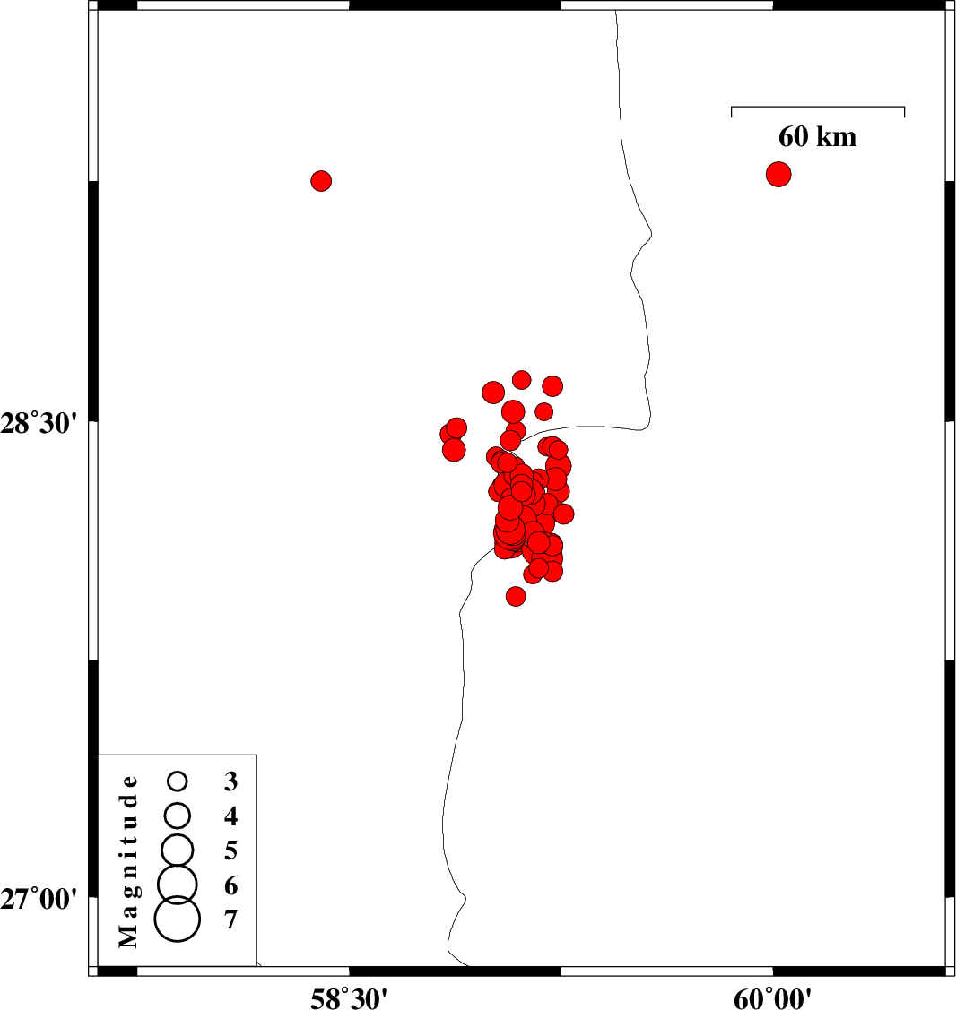 2011/01/27 21:41:33.6 01:11:33.6 28.1559.0914 ML:2.9 Kerman Province, 139 km North-East of Kahnuj