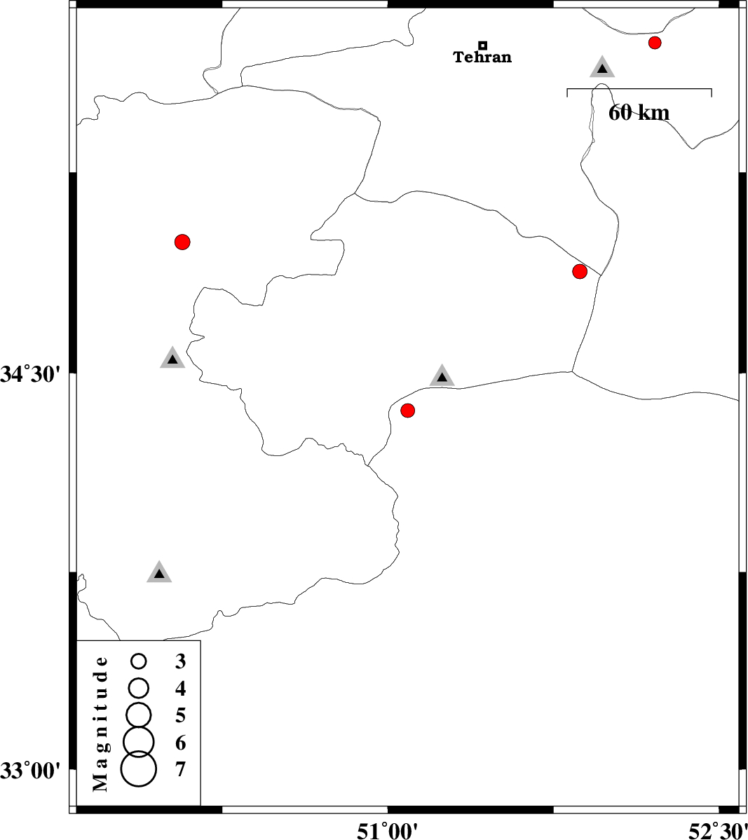 | 2011/01/30 | 08:49:49.0 | 12:19:49.0 | 34.36 | 51.09 | 7 | ML:2.8 | Esfahan Province, 38 km South-East of Qom | ||