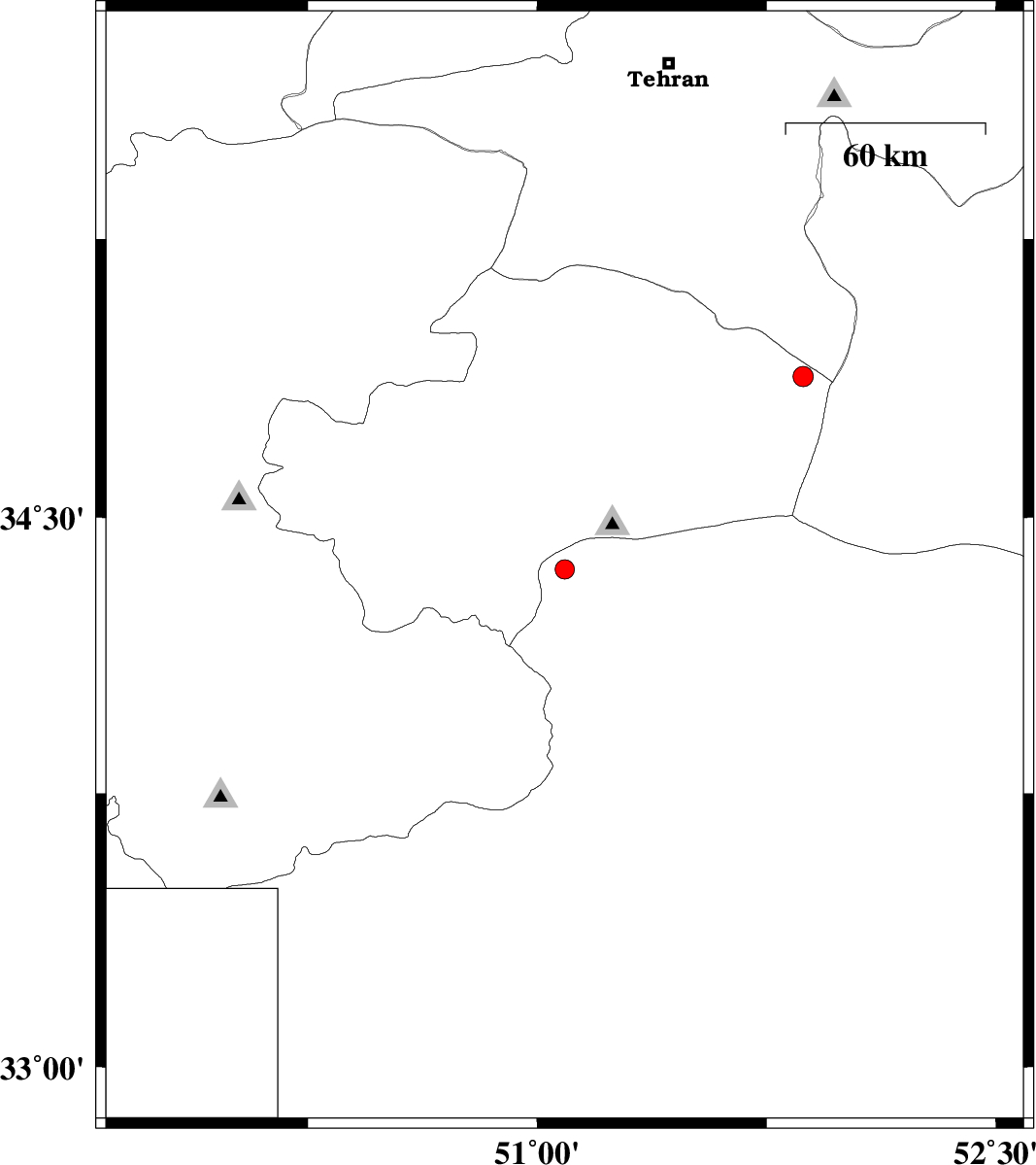 | 2011/01/30 | 08:49:49.0 | 12:19:49.0 | 34.36 | 51.09 | 7 | ML:2.8 | Esfahan Province, 38 km South-East of Qom | ||
