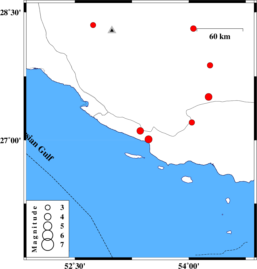 | 2011/01/09 | 13:13:06.7 | 16:43:06.7 | 27.51 | 54.26 | 17 | ML:4.2 | Fars Province, 21 km South of Lar | ||