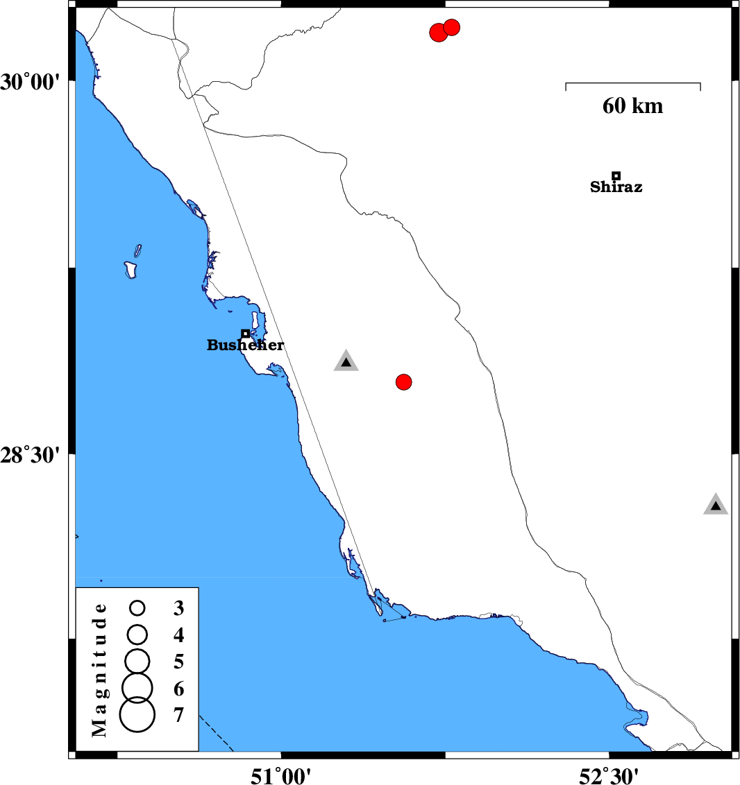 | 2011/01/25 | 07:04:07.8 | 10:34:07.8 | 30.19 | 51.72 | 38 | ML:3.8 | Fars Province, 21 km East of Nurabad |