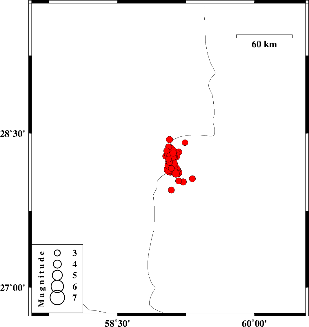 2011/01/28 04:20:36.3 07:50:36.3 28.1559.0715 ML:5.3 Kerman Province, 137 km North-East of Kahnuj