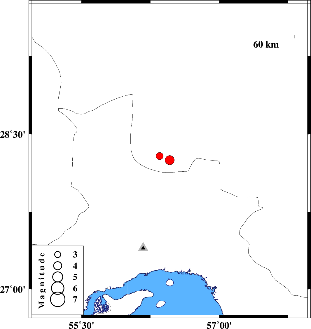 | 2011/02/06 | 08:13:13.0 | 11:43:13.0 | 28.25 | 56.46 | 29 | ML:4.5 | Kerman Province, 55 km East of Hajiabad | ||