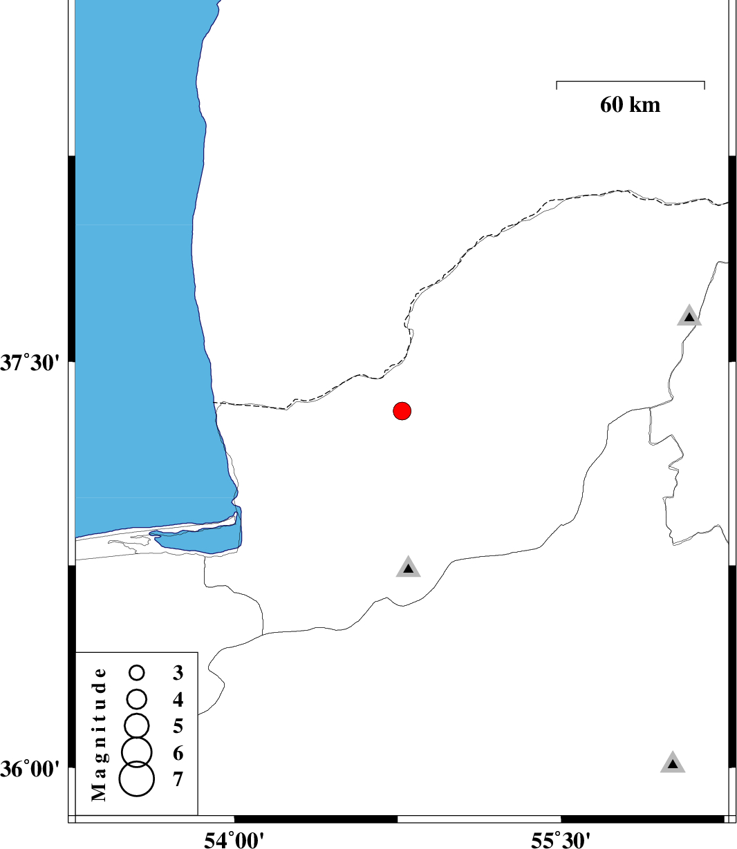 | 2011/02/07 | 21:35:39.3 | 01:05:39.3 | 37.32 | 54.77 | 41 | ML:3.6 | Golestan Province, 34 km West of Gonbad-e kavus | ||