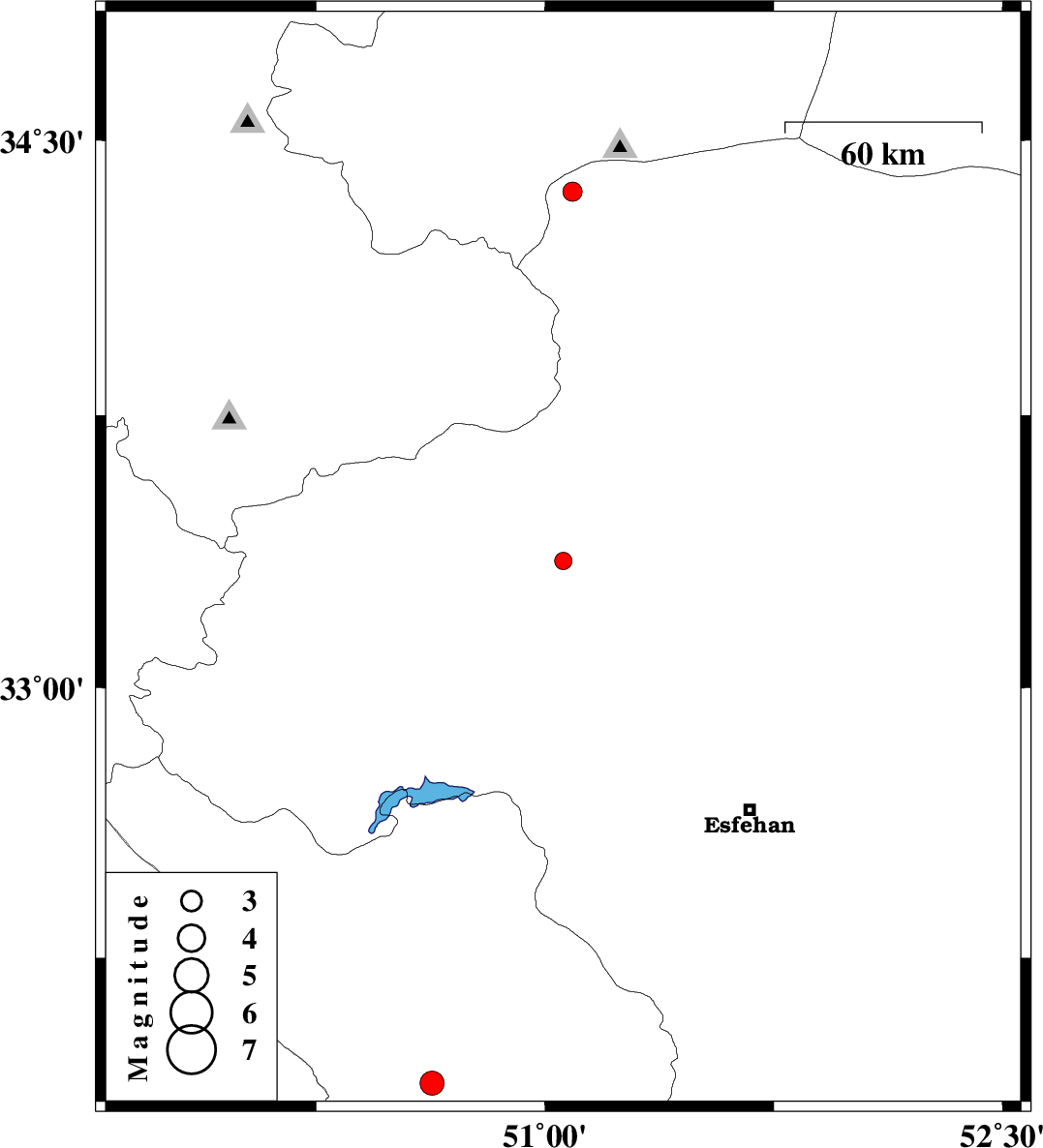 | 2011/01/30 | 08:49:49.0 | 12:19:49.0 | 34.36 | 51.09 | 7 | ML:2.8 | Esfahan Province, 38 km South-East of Qom |