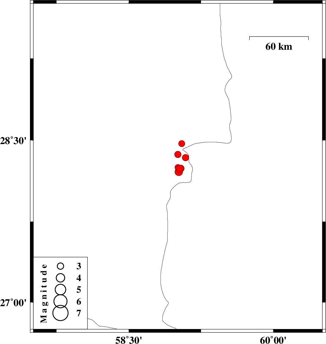Map Region : lat:26.75-29.75  lon:57.51-60.51