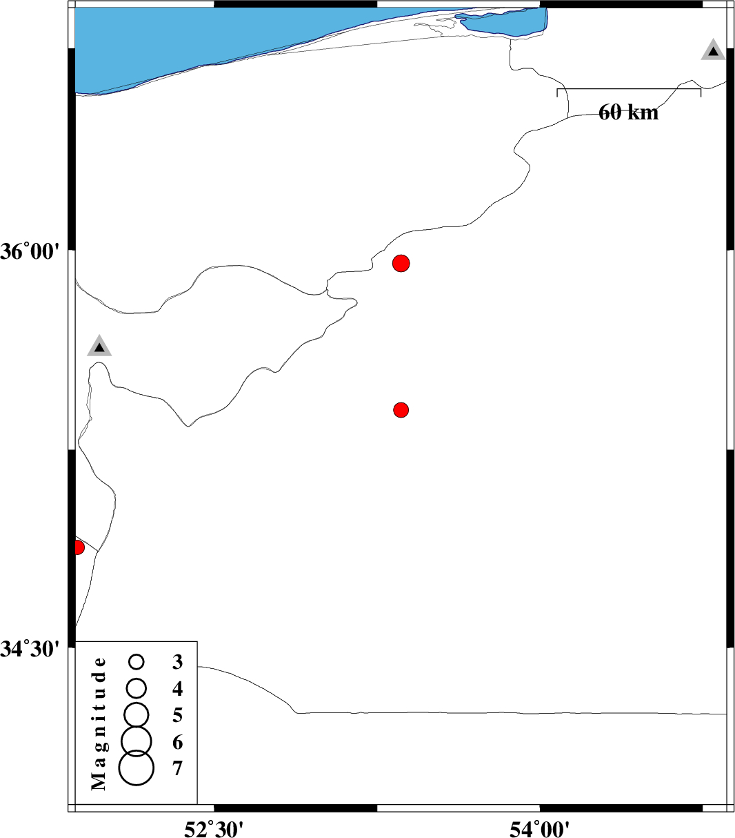 | 2011/01/28 | 04:53:04.2 | 08:23:04.2 | 35.95 | 53.36 | 24 | ML:3.5 | Semnan Province, 43 km North of Semnan | ||