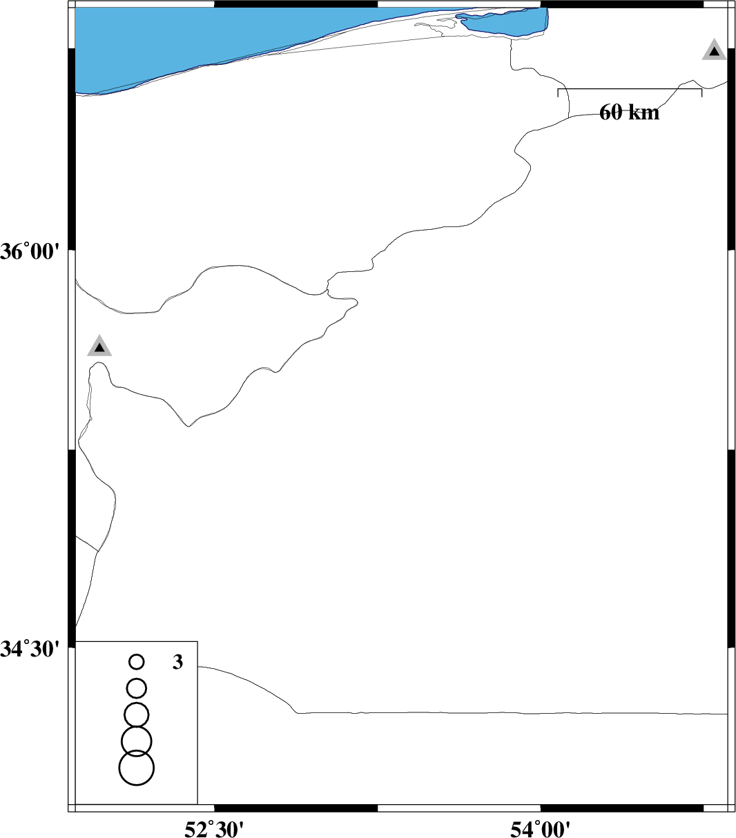 2011/02/20 | 22:38:36.1 | 02:08:36.1 | 35.4 | 53.36 | 39 | ML:3.1 | Semnan Province, 19 km South of Semnan |